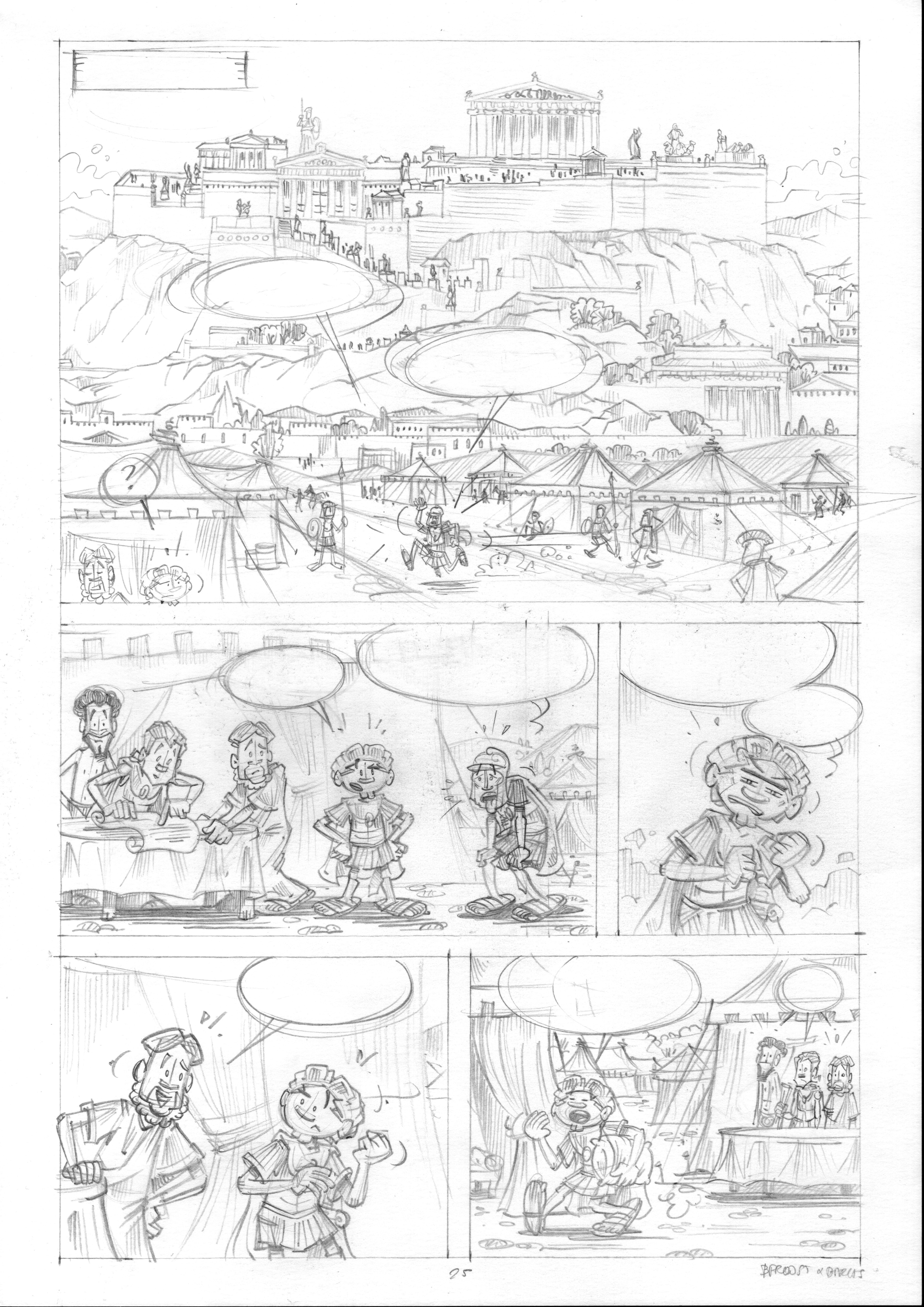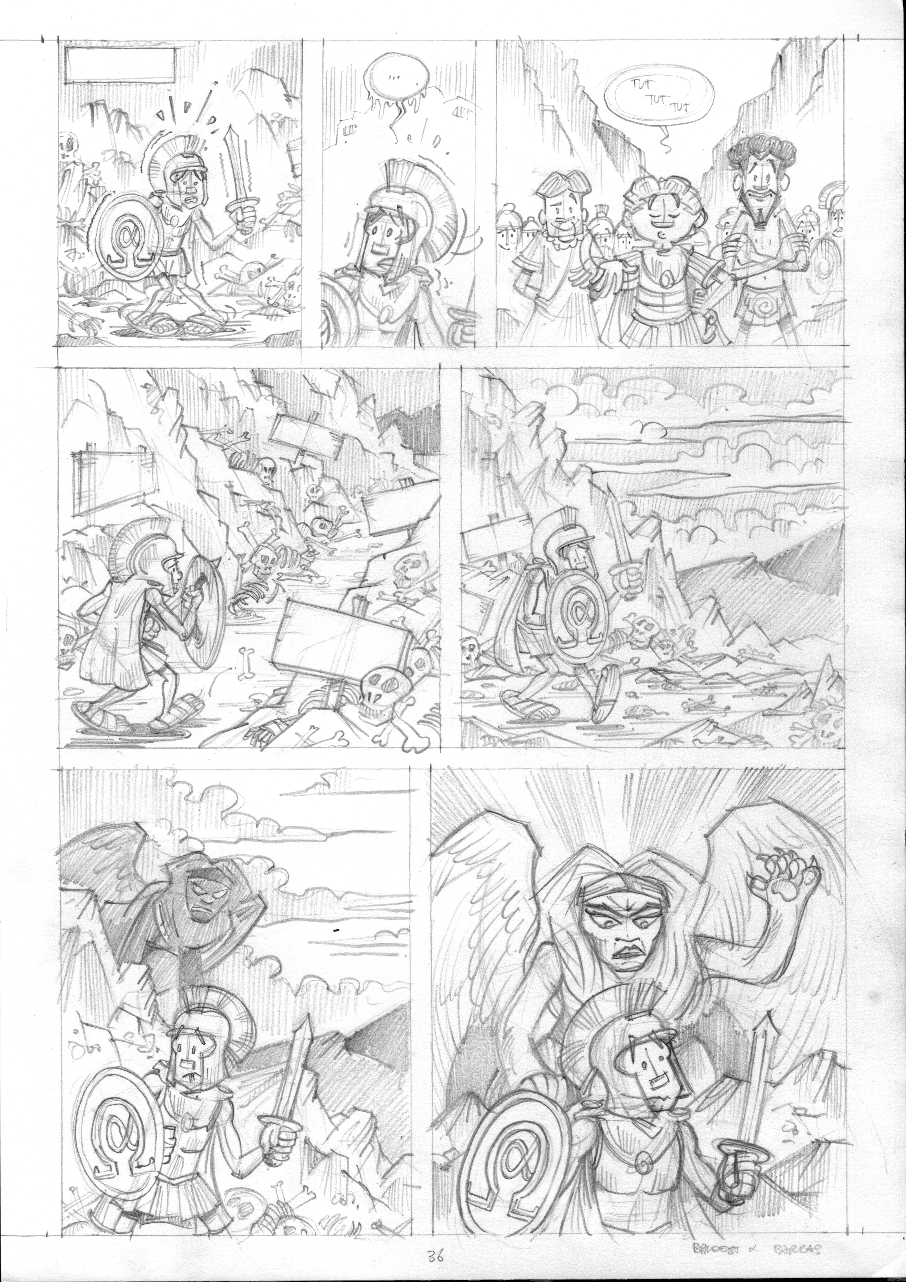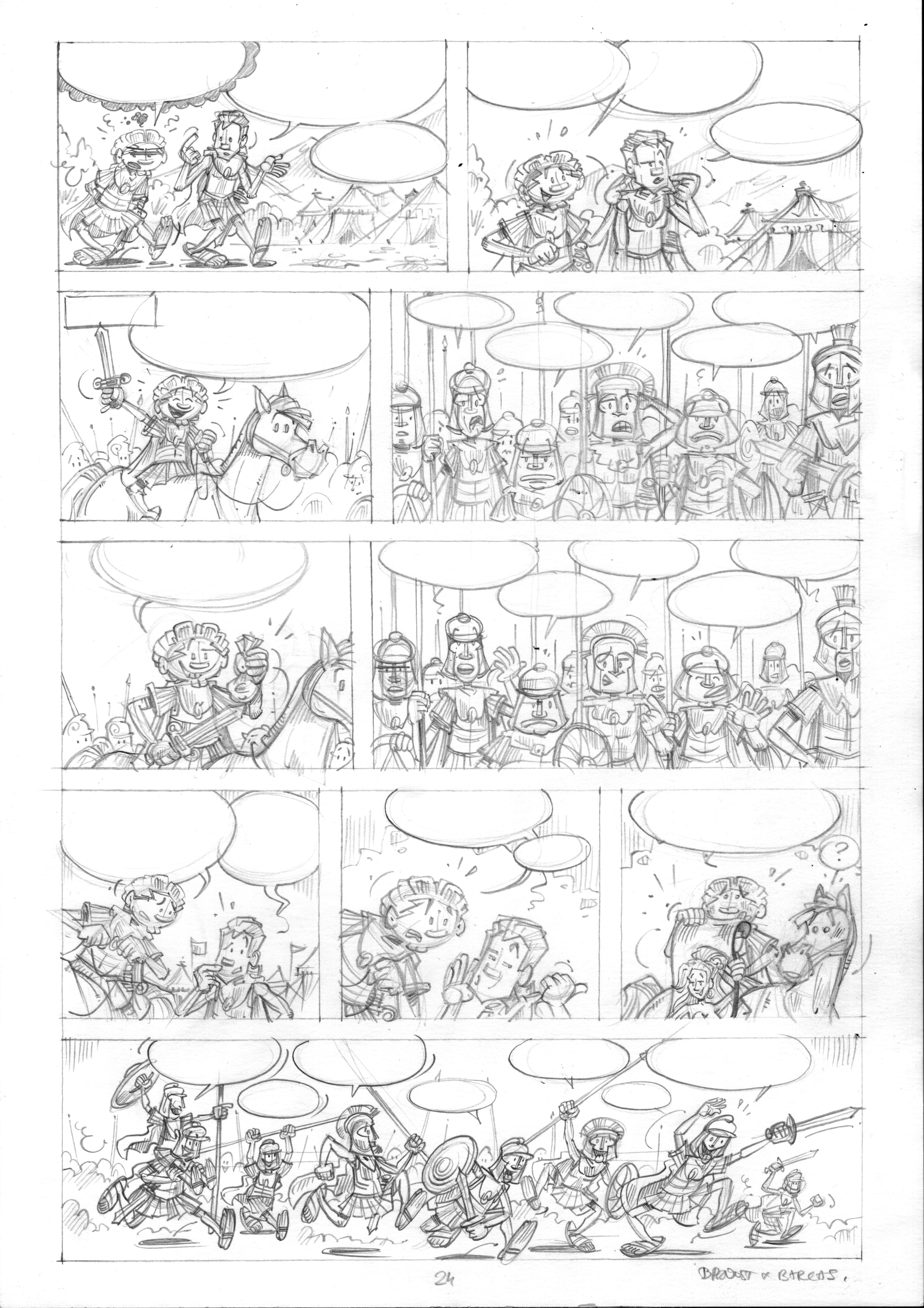 Het gaat vooruit. Vorige keer hebben we het album in stukken aangepakt: 10 pagina’s in potlood tekenen, dan inkten, dan inkleuren en dan de volgende 10. Nu gewoon: alles eerst in potlood, en daarna pas de volgende stappen…
