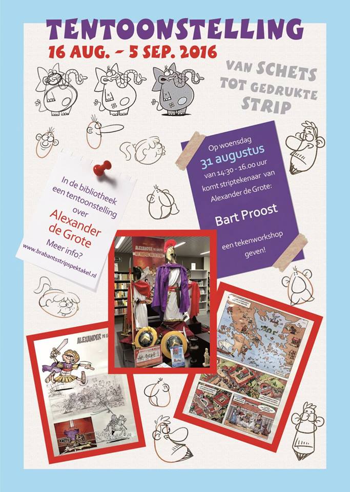 Jawel, nu mogen we het fijne nieuws wel aankondigen: de zéé uitgebreide én educatieve ‘Alexander De Grote’-tentoonstelling zal van 15 augustus t.e.m. 5 september 2016 te bewonderen zijn in de openbare bibliotheek van Veldhoven – in het teken van het geweldige Brabants Stripspektakel aldaar. 🙂