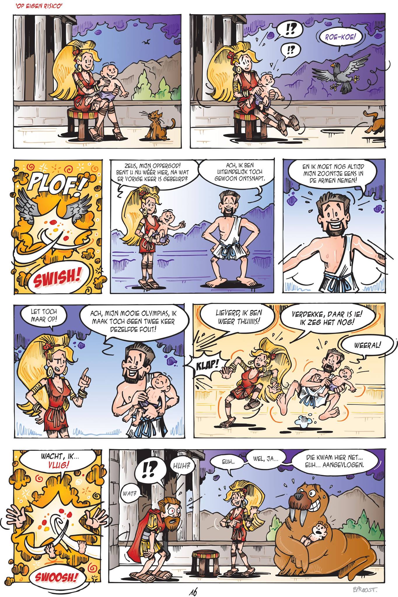 Een tussendoortje! Collega-striptekenaar René Bergmans (net als Bart Proost wonende in Lommel) wilde doodgraag zijn eigen versie eens maken van de nieuwe Alexander-gag ‘Op eigen risico’. En zo geschiedde! Wij delen de versie van René graag met jullie: een héél andere stijl, met een behoorlijk sexy Olympias (vrouwelijk schoon is zowat zijn specialiteit). 😉 Bedankt voor de hommage, René! 🙂