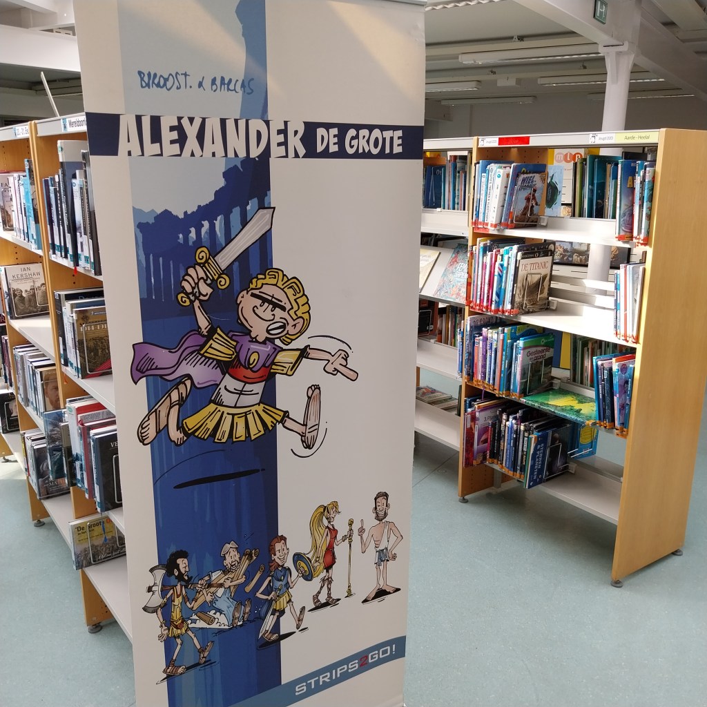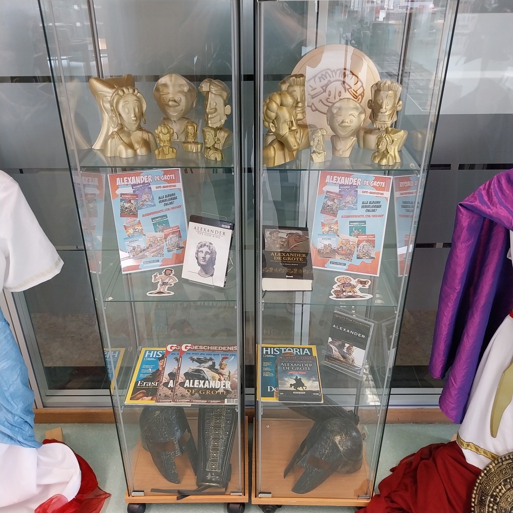 En zonet nog de educatieve huurexpo rond Alexander De Grote opgebouwd in de bib van Vaart Beerse…