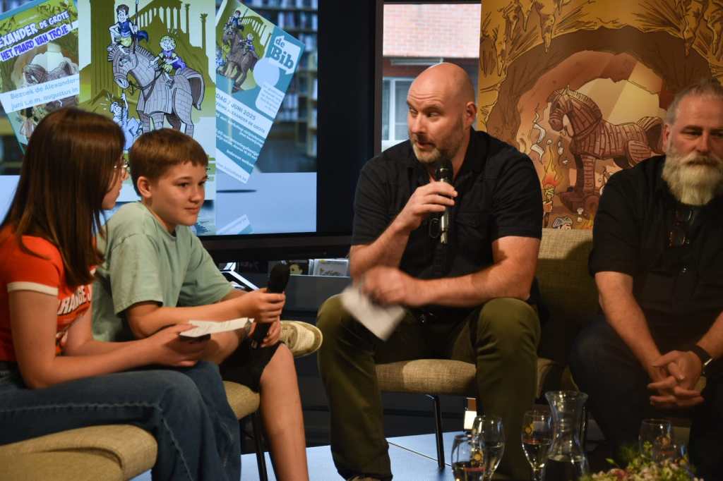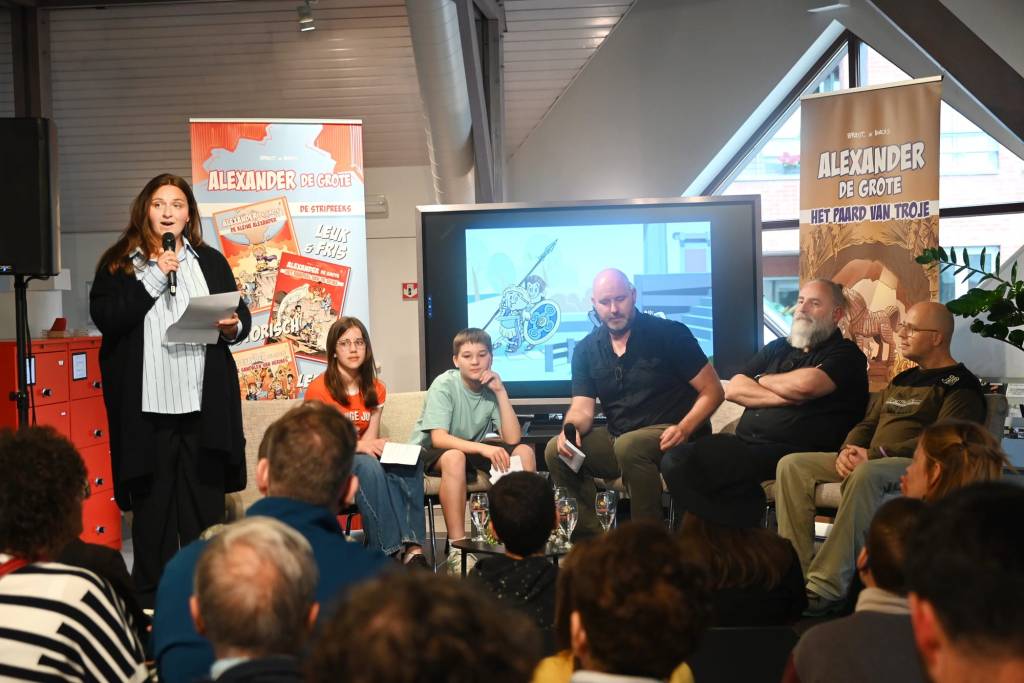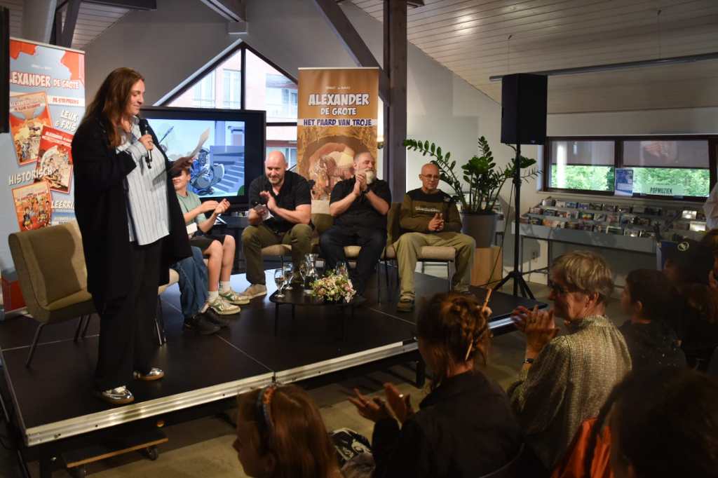 En daarna hebben wij – Bart Proost, Barcas, Rene Bergmans en het team van Bibliotheek Lommel – ’s avonds het talrijk opgekomen en enthousiaste publiek onthaald op onze boekvoorstelling voor ‘Alexander De Grote & Het Paard van Troje’.