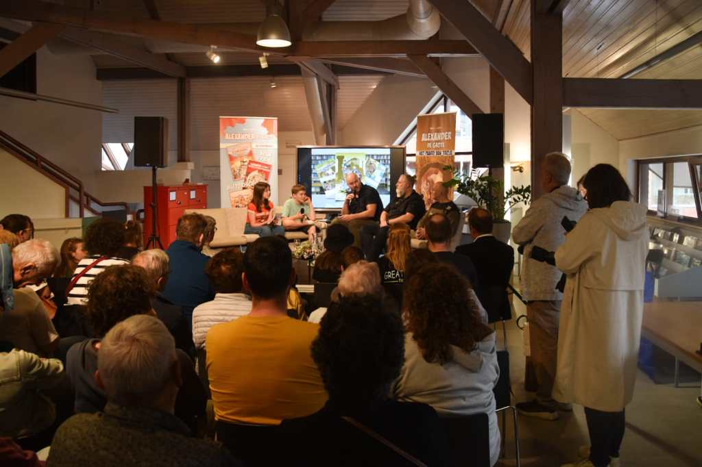 Wat volgde was uitermate plezant: een leuke Q&A met Gust en Helena van de leesjury, een succesvolle signeersessie, een fijne receptie… en dit alles terwijl jong en oud de lopende expo over Alexander kon bezoeken of zich creatief kon uitleven aan de tekenlichtbakken.