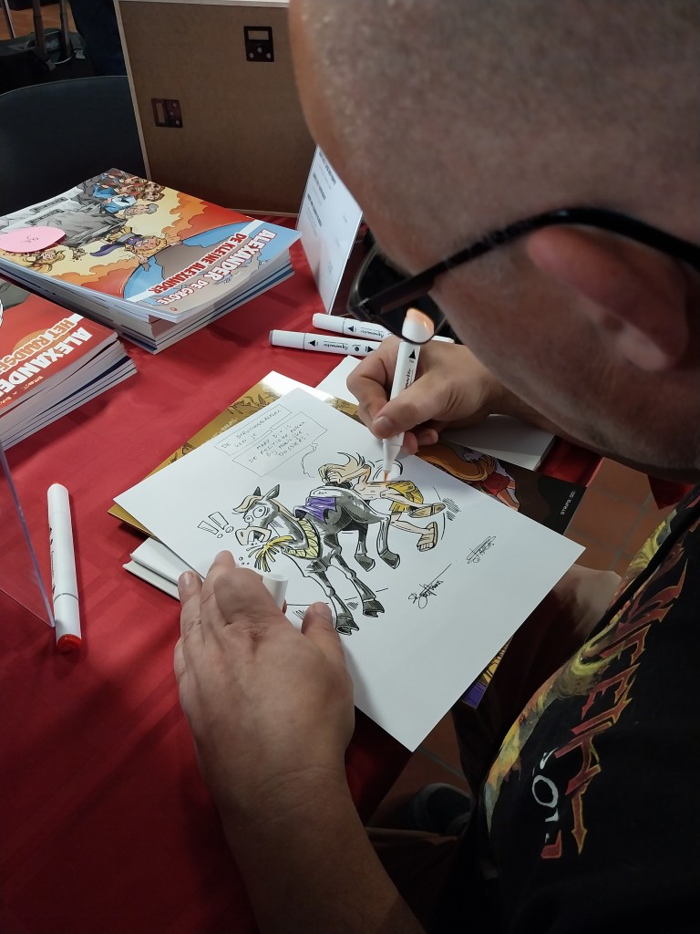 Met allerlei fijne dédicasses (in potlood, inkt en kleur) voor de fans. En een leuk nieuw concept (copyright : René) waarbij fans een karikatuurtje van zichzelf kunnen laten tekenen, geflankeerd door Alexander himself!