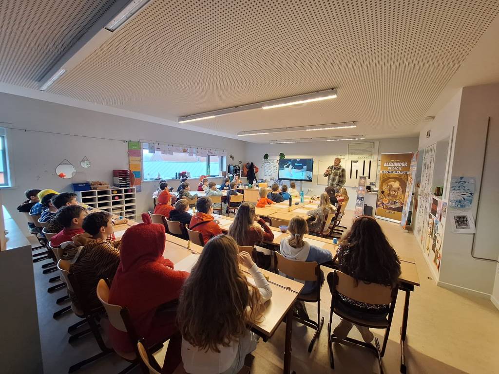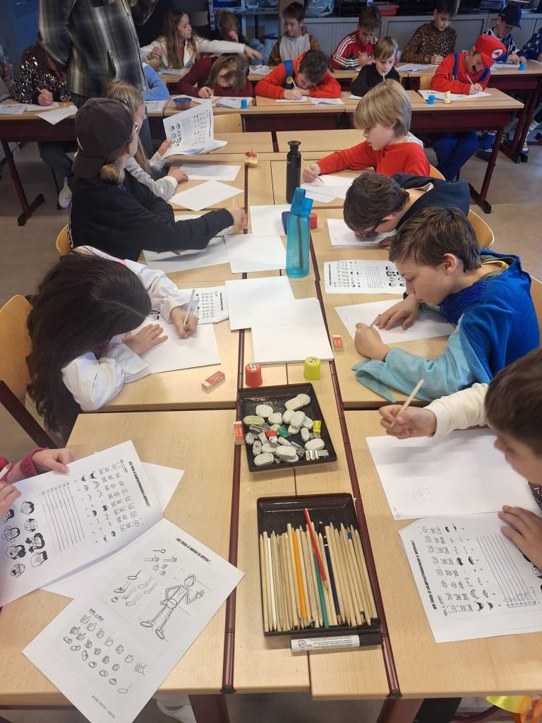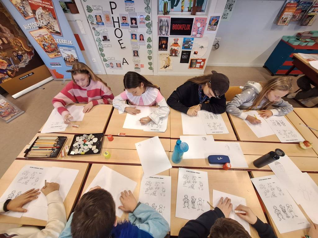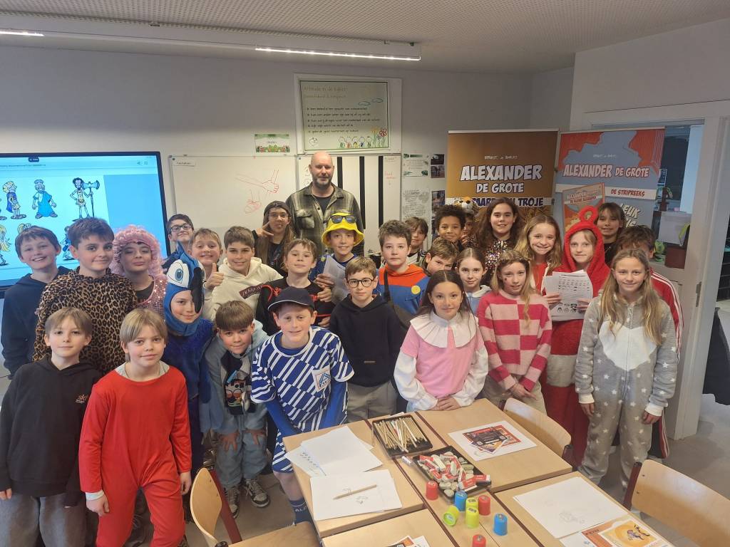 Onze tekenaar Bart Proost gaf vandaag weer een enorm toffe workshop ‘stripfiguren tekenen met Alexander De Grote‘ in BS De Vlinderboom te Eke.